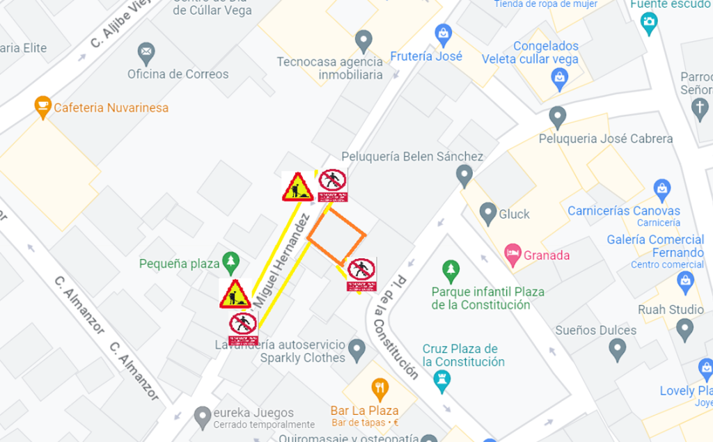 Acceso peatonal a residentes: para garantizar la seguridad se contemplan cortes totales de paso peatonal en la zona de afección de la obra mientras se estén realizando los trabajos de demolición; podrán acceder a los domicilios ubicados al final de la C/ Miguel Hernández, por C/ del Horno y C/Matadero.
