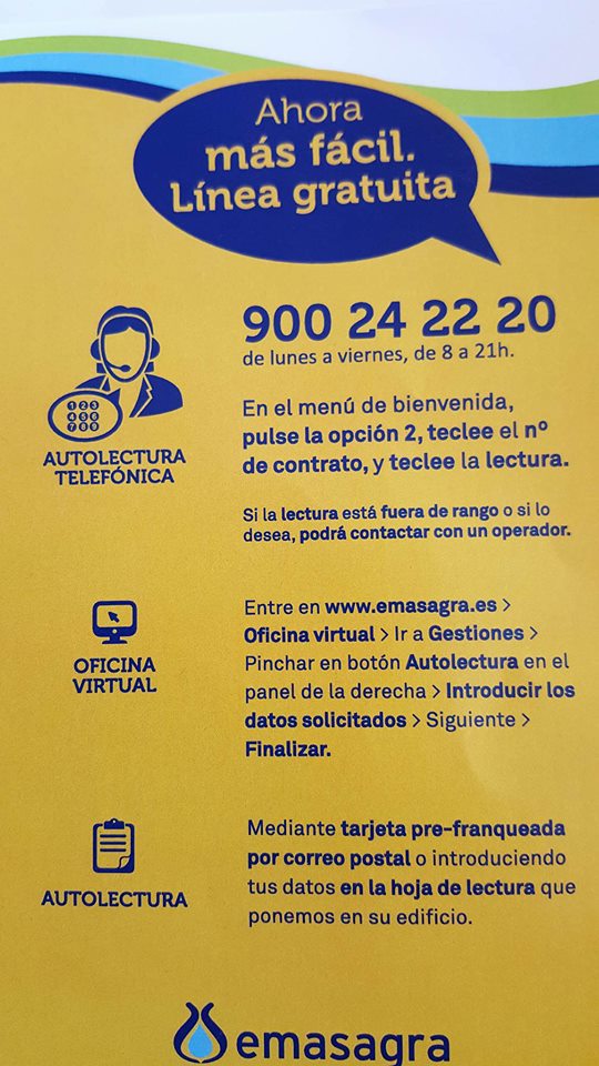 Información destinada para aquellos domicilios y fincas que dispongan de contadores de agua interiores que no pueden ser leídos regularmente por operarios de la Empresa concesionaria del servicio del Agua.