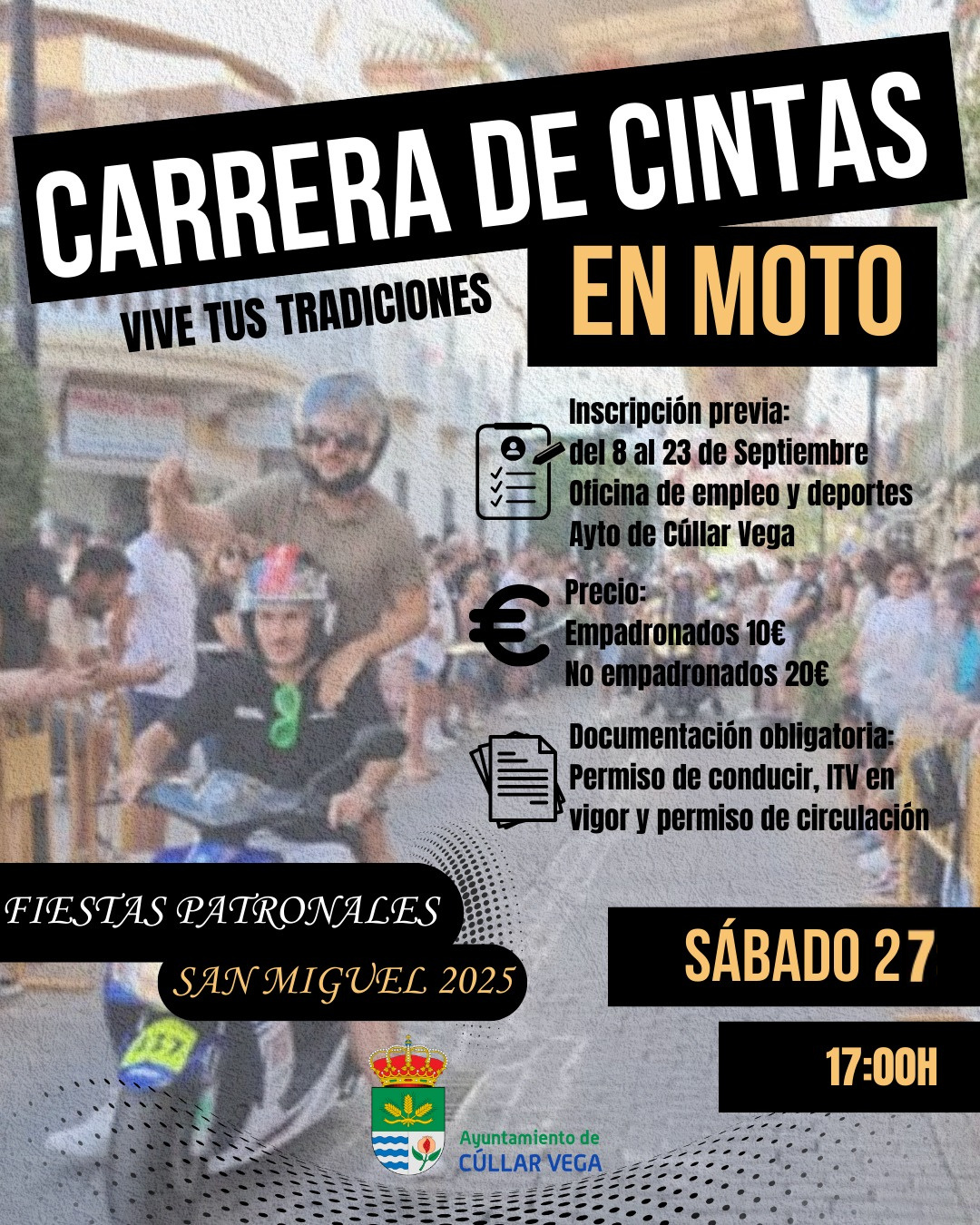 – Requisitos: Los participantes deberán presentar su permiso de conducir, ITV en vigor y permiso de circulación para la moto.