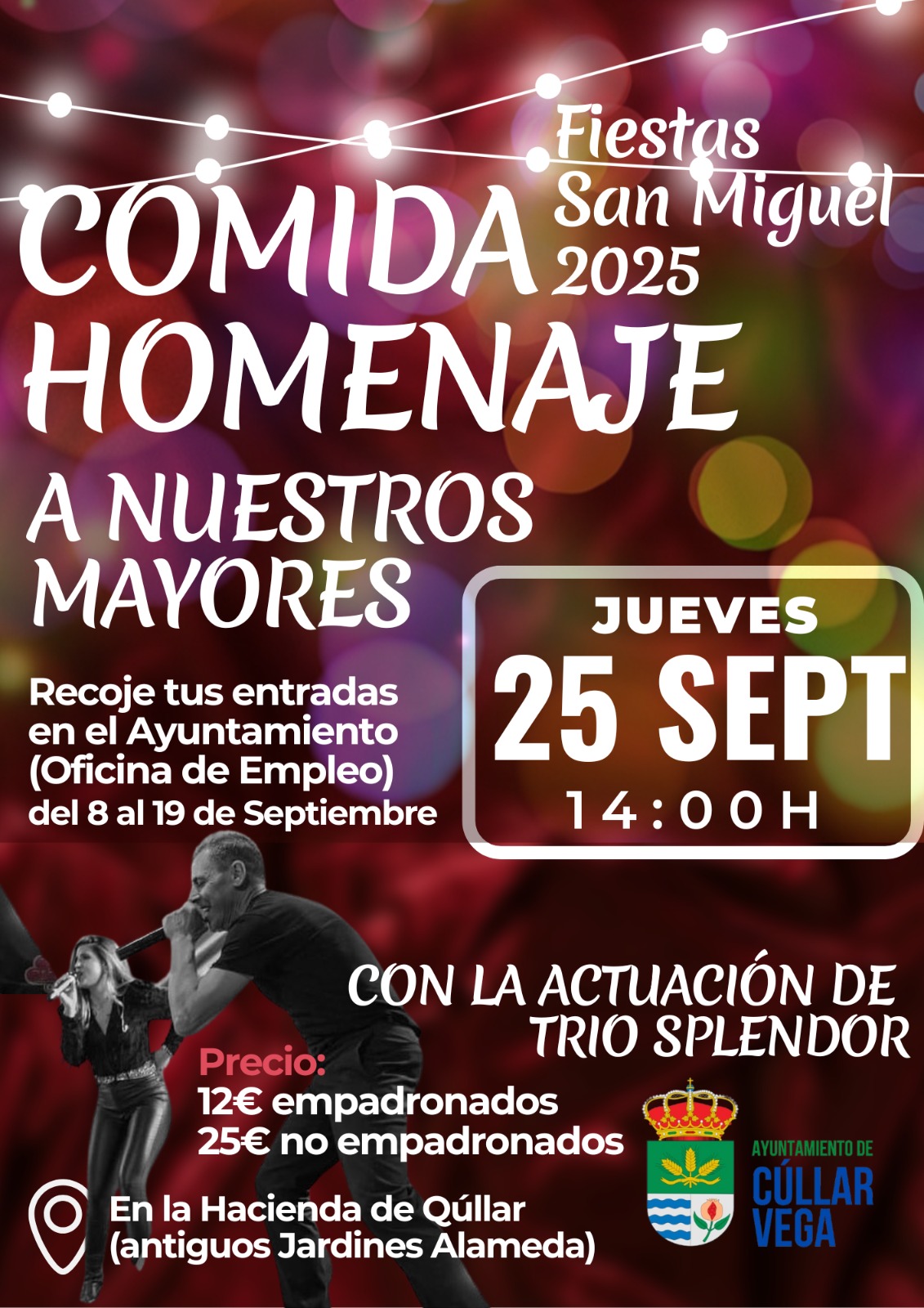 – Descripción: Un evento muy especial para rendir homenaje a nuestros mayores. La comida estará acompañada por la actuación del grupo Trio Splendor, que amenizará el evento con música.