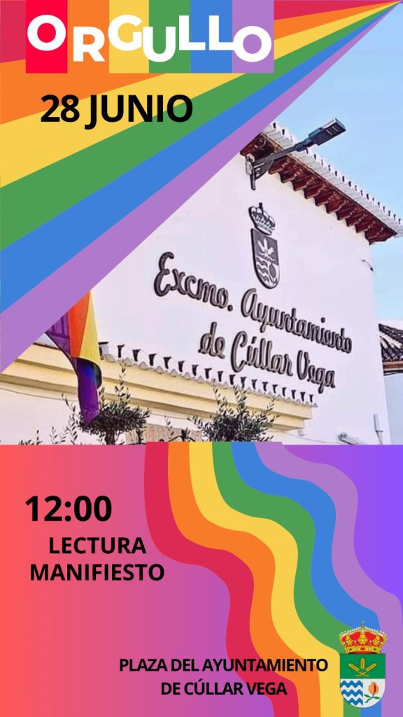 El miércoles 28 de junio, día Internacional del Orgullo LGBTI, a las 12 h., tendrá lugar la lectura de manifiesto en la Plaza del Ayuntamiento de Cúllar Vega.