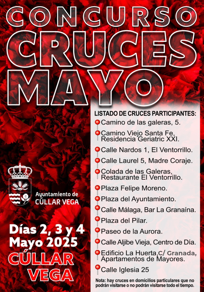El Ayuntamiento de Cúllar Vega ha anunciado la celebración del tradicional Concurso de Cruces de Mayo los días 2, 3 y 4 de mayo de 2025, un evento que promete llenar las calles del municipio de color, flores y ambiente festivo.
