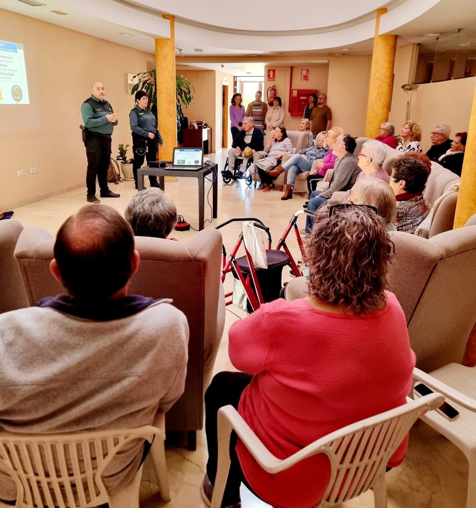 Dos agentes de la Guardia Civil de Granada fueron los encargados de impartir una charla sobre el denominado Plan Mayor Seguridad del Ministerio del Interior, en el que los asistentes aprendieron algunas claves para evitar delitos en la vía pública, en sus casas o en Internet, entre otros escenarios.