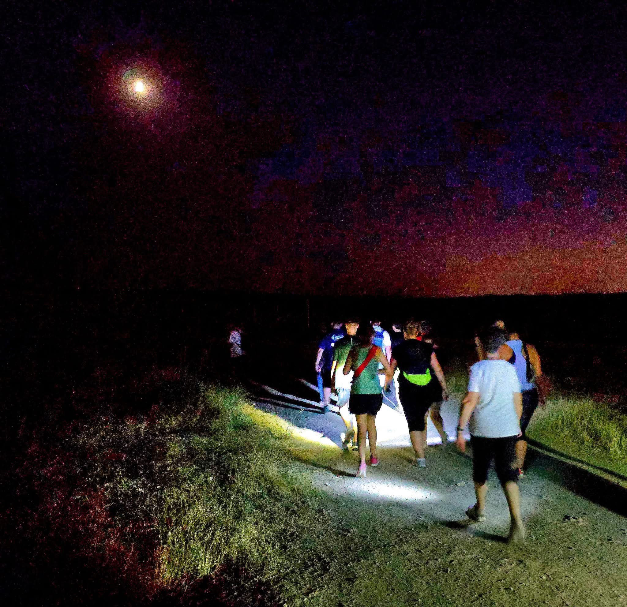 Un grupo formado por 80 vecinos de Cúllar Vega ha tenido la oportunidad de hacer senderismo por la Vega de Granada en horario nocturno, gracias a una actividad organizada por el Ayuntamiento de la localidad dentro de su programa de verano.
