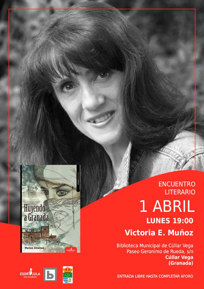 El lunes 1 de abril a las 19 h. tendremos un encuentro literario con Victoria E. Muñoz, autora de «Huyendo a Granada». Nos presentará esta bonita historia en tierras de Al-Andalus y posteriormente en el mes de mayo realizaremos la ruta literaria en Granada por los lugares que aparecen en dicho libro.