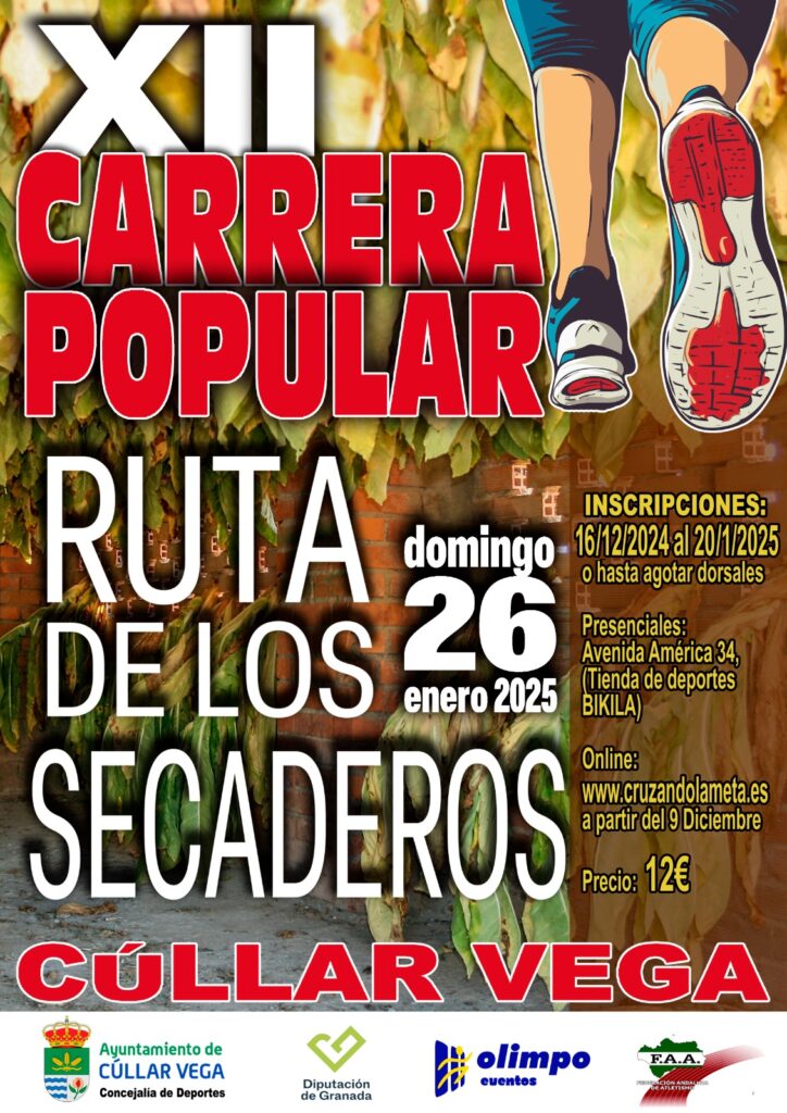 Los amantes del ‘running‘ tienen una cita para correr por la Vega de Granada este domingo, 26 de enero. El municipio de Cúllar Vega acogerá la XII Carrera Popular “Ruta de los secaderos”, una de las pruebas deportivas más bonitas de toda la provincia.