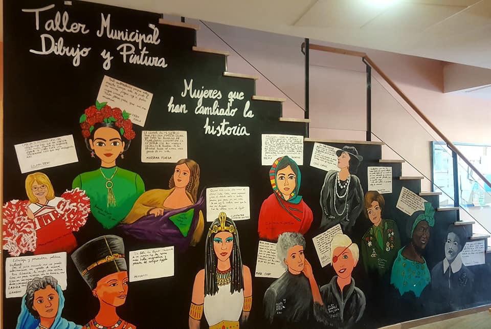 Son alumnos del Taller de Dibujo y Pintura, y han pintado un mural en el que aparecen destacadas figuras femeninas como Mariana Pineda, Indira Gandhi, Cleopatra, Frida Kahlo o Marie Curie.