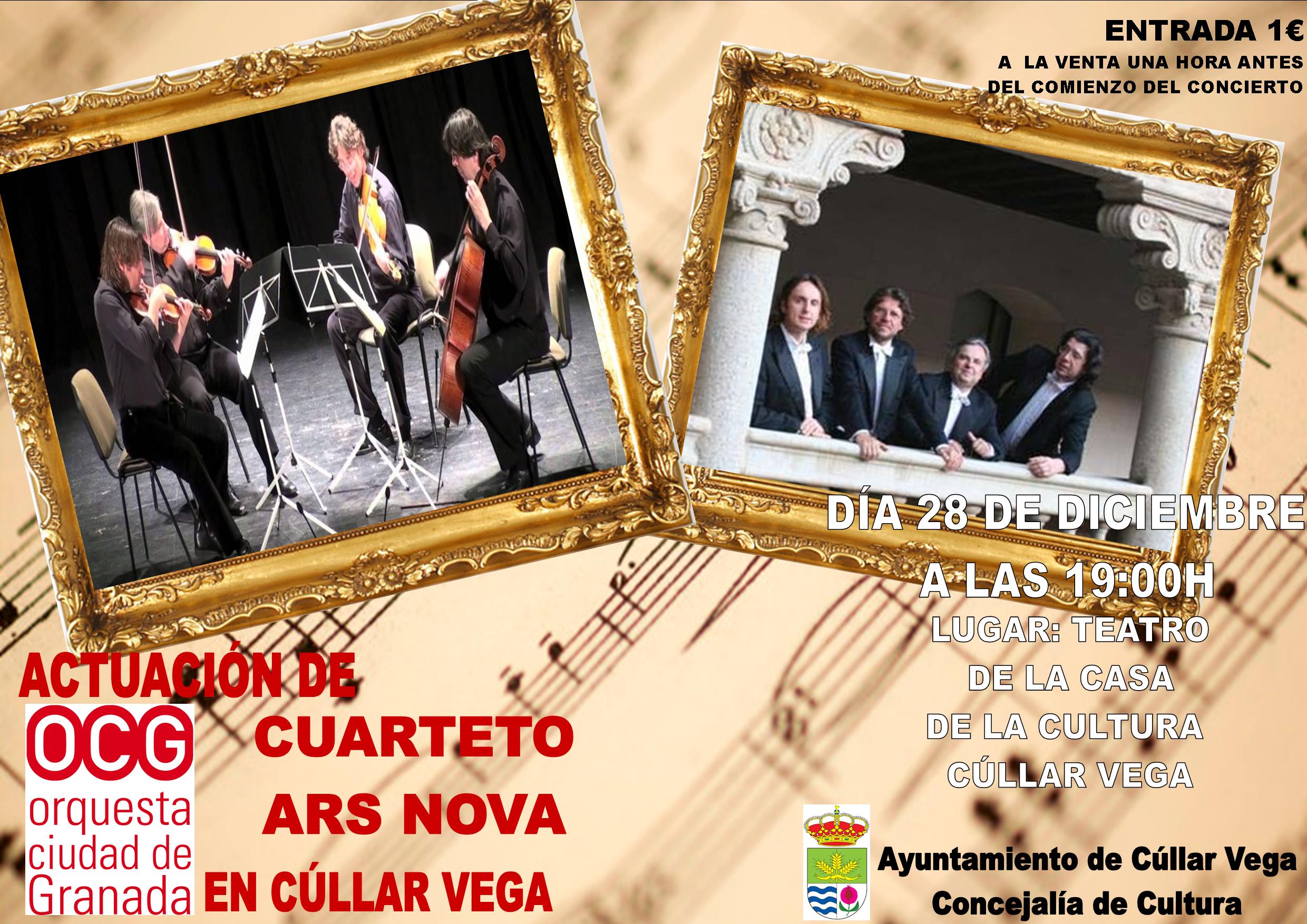 Concierto del Cuarteto Ars Nova de la Orquesta Ciudad de Granada. Lunes 28 de Diciembre a las 19.00 en la Casa de la Cultura. .