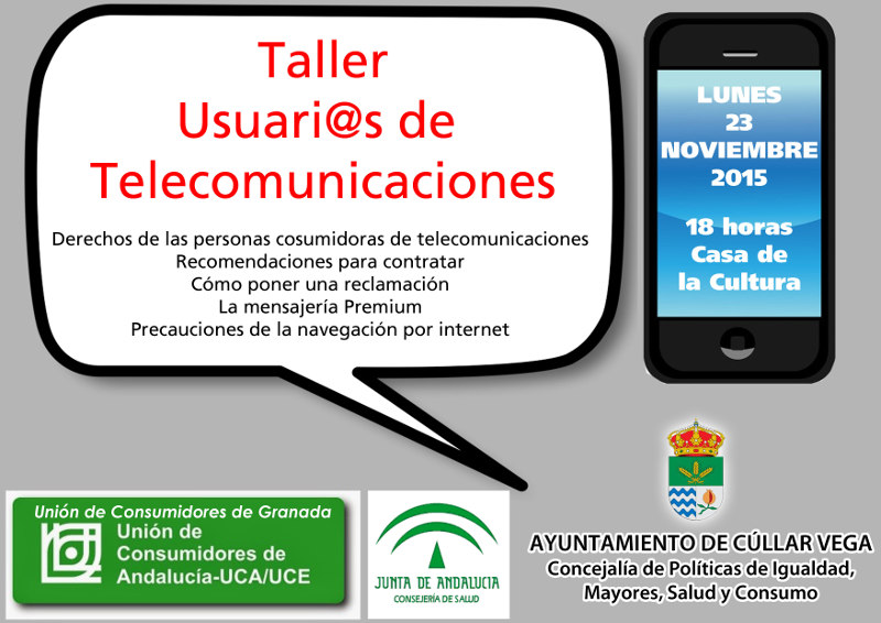 Taller Usuari@s de Telecomunicaciones: lunes 23 de Noviembre a las 18 h. en la Casa de la Cultura. .
