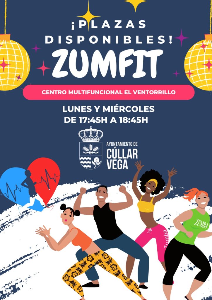 El Ayuntamiento de Cúllar Vega anuncia que todavía hay plazas disponibles para el programa ZUMFIT, una divertida y energética actividad que combina baile y fitness al ritmo de la música.
