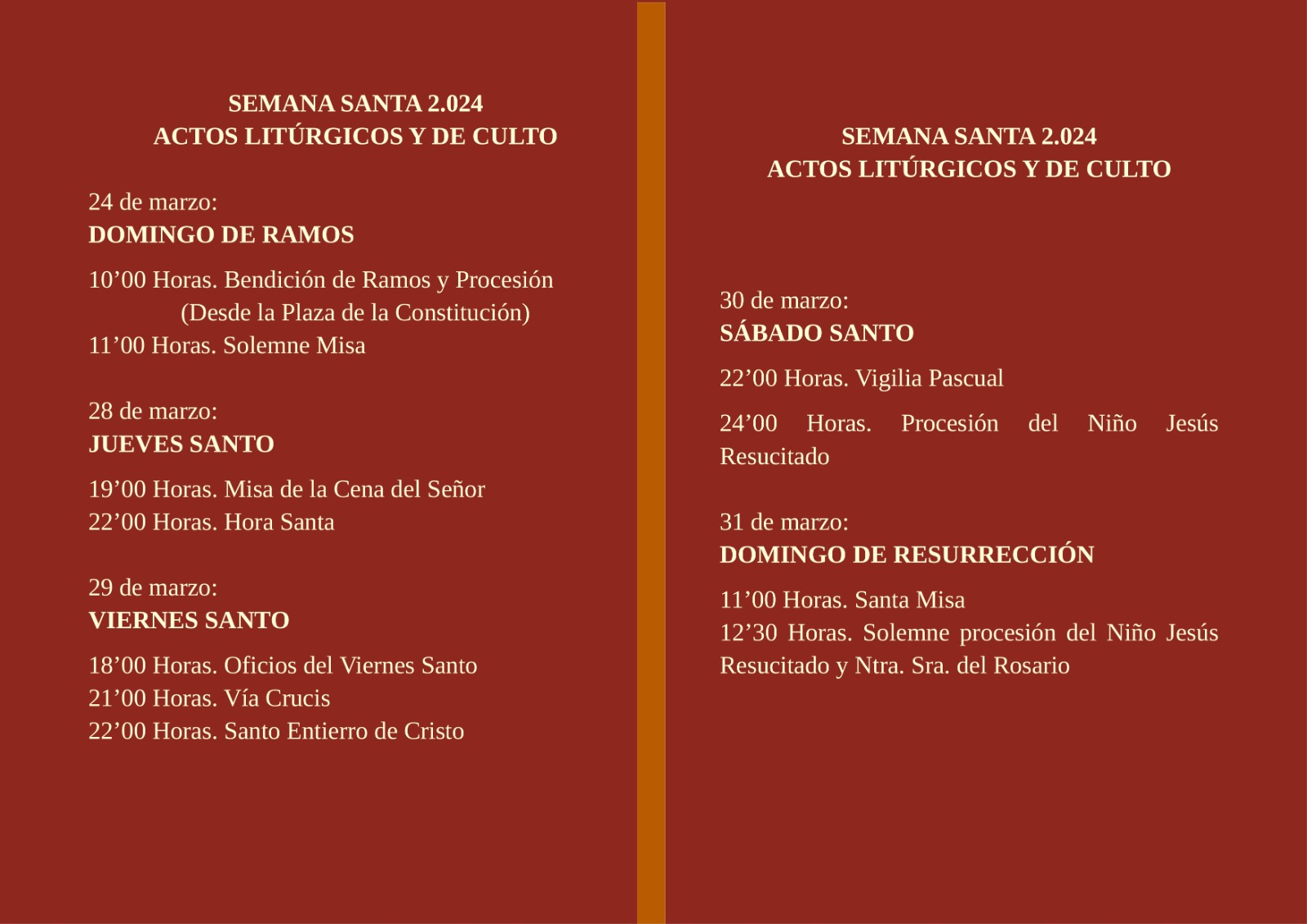 Programación de actos litúrgicos y de culto Semana Santa 2024