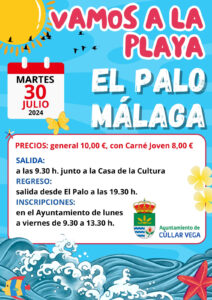 Día 30, Martes – 9´30 h. – ¡VENTE A LA PLAYA! EL PALO (Málaga) – Precio: 10 € (con carné joven 8 €)