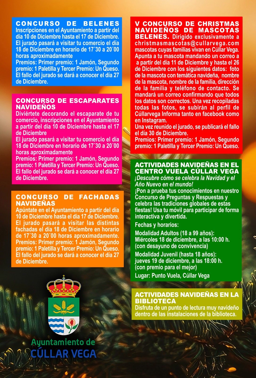 ¡Ya está disponible el Programa de Actividades de Navidad 2024/2025 en Cúllar Vega que podéis descargar desde este enlace: https://www.cullarvega.com/wp-content/uploads/2024/12/Navidad.pdf