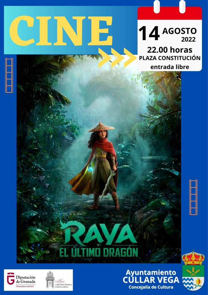 – Día 14, Domingo – 22’00 h. ¡Cine al Fresquito! Película: «Raya y el último dragón» Apta para todos los públicos Lugar: Plaza de La Constitución. Actividad dentro del Programa de Concertación Local 2022 – Diputación de Granada. *