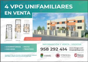 La semana pasada la Empresa Provincial de Vivienda, Suelo y Equipamiento de Granada (VISOGSA) hizo pública la Promoción de 4 Viviendas Unifamiliares de Protección Oficial en Cúllar Vega que se construirán próximamente.
