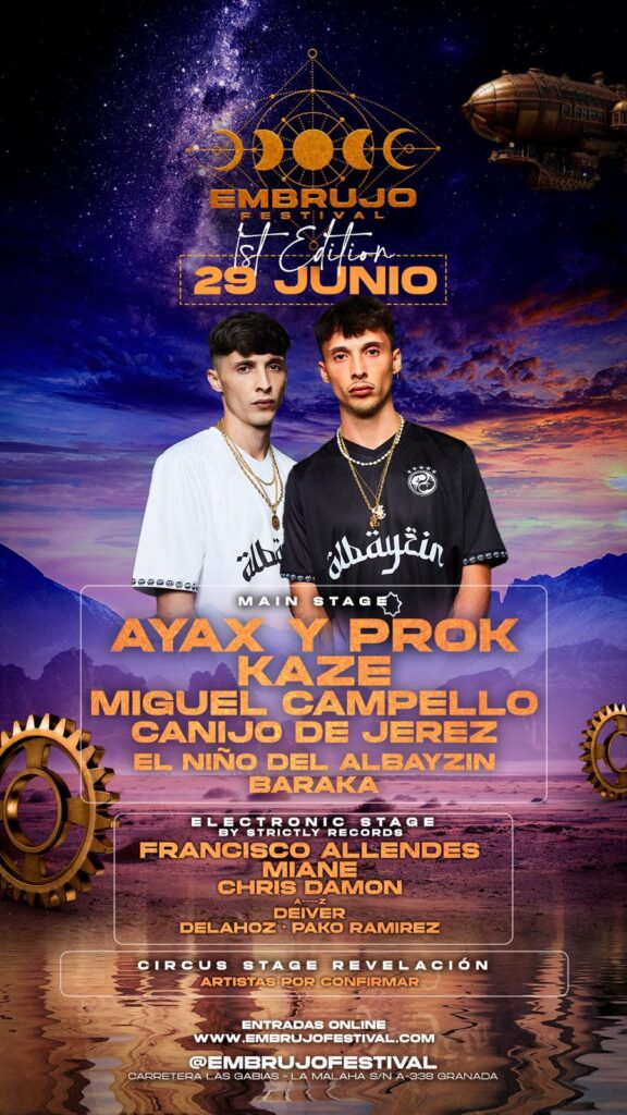 ¿Te gustaría asistir al EMBRUJO FESTIVAL que contará con las actuaciones de Ayax y Prok, El Canijo de Jerez, Miguel Campello, Kaze, o El niño del Albayzín, entre otros?