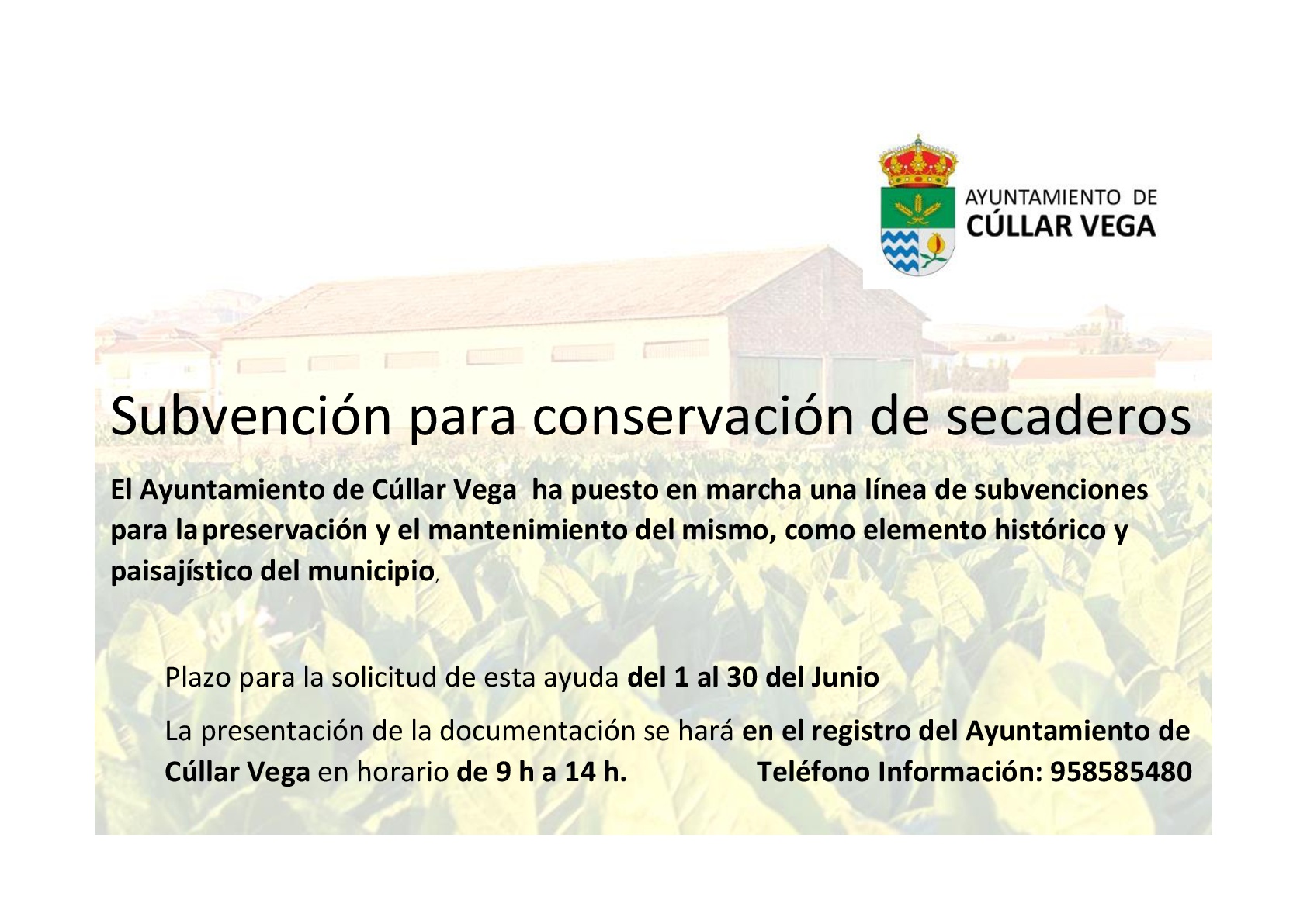 Desde la Concejalía de Urbanismo queremos informarle que con el objeto de promover la preservación y el mantenimiento de los secaderos como elementos históricos y paisajísticos del municipio, se ha puesto en marcha una línea de subvenciones para la conservación y protección de dichas edificaciones.