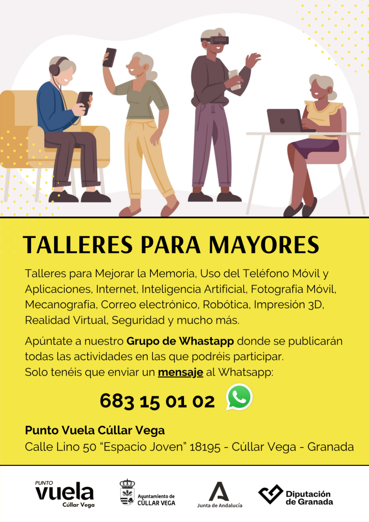 El Punto Vuela de Cúllar Vega vuelve a organizar una completa programación de talleres dirigidos especialmente a personas mayores que deseen aprender, mejorar sus habilidades digitales o simplemente mantenerse activos mentalmente y que comenzará a finales de octubre de 2025.