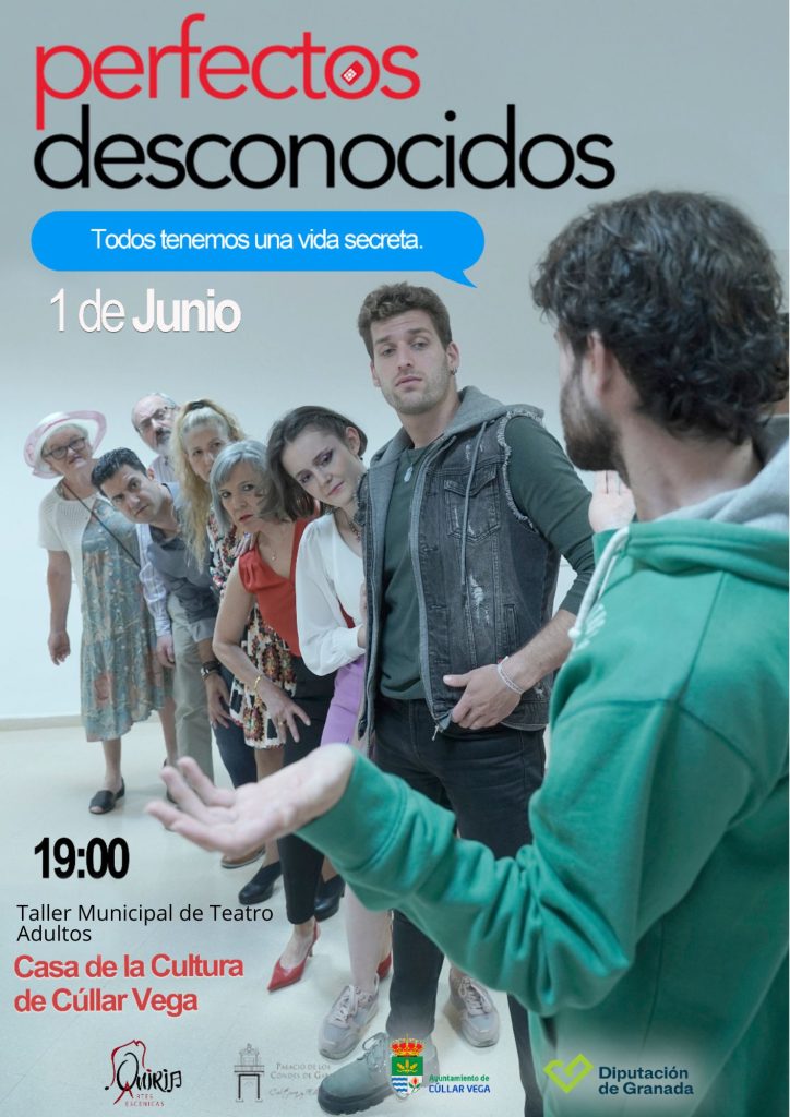«Todos tenemos una vida secreta». El Taller Municipal de Teatro (adultos) presenta la obra «Perfectos Desconocidos» bajo la dirección de Fran Arroyo y el equipo técnico-artístico de ONIRIA Artes Escénicas. Será este sábado 1 de junio de 2024 a las 19 h. en el Teatro de la Casa de la Cultura.