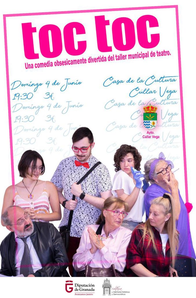 Una comedia obsesivamente divertida del Taller Municipal de Teatro de Cúllar Vega, Ayuntamiento de Cúllar Vega y Diputación de Granada (Programa de Concertación Local).