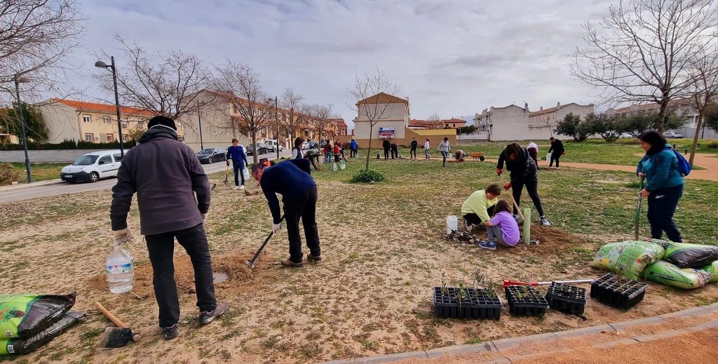 Durante toda una mañana, los culleros sembraron más de medio centenar de ejemplares de árboles y arbustos, “creando un magnífico ambiente de compromiso y de futuro, y haciendo más verde este espacio público”, en palabras del alcalde de Cúllar Vega, Jorge Sánchez.