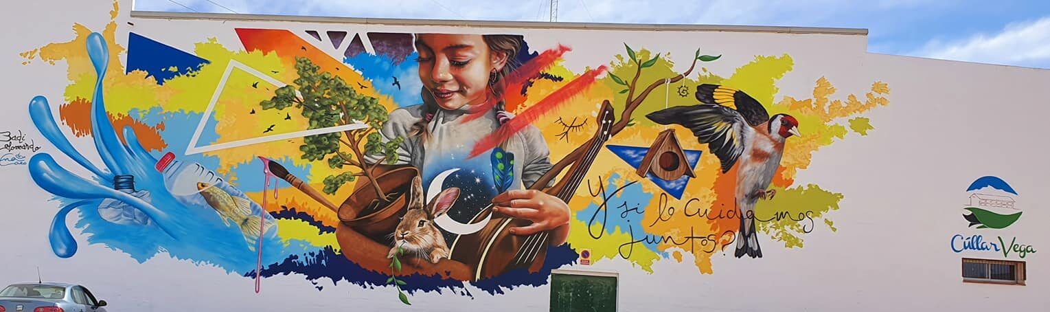 El pasado viernes 6 de marzo se concluyó el espectacular mural de «BADI Coloreando«, artista grafitero granadino, tras casi un mes de trabajo gracias al proyecto desarrollado a través de las Concejalías de Cultura, Juventud y Medio Ambiente del Ayuntamiento de Cúllar Vega. Para el desarrollo del diseño se ha elegido la parte trasera del edificio de la Casa de la Cultura.